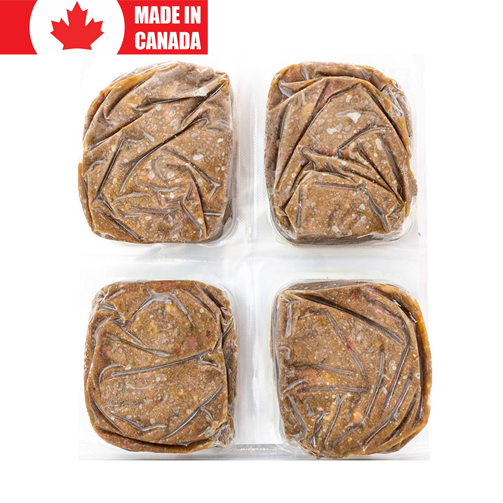 Keep product frozen until ready to use. Defrost package in a leak-proof container (reduces the risk of cross contamination!) and leave in the refrigerator for 24 hours, or until soft through. We recommend serving in a stainless-steel bowl as it is easier to clean, and does not have surface pores that may collect bacteria. Partially eaten food should be put back into the refrigerator after 20 minutes. Wash hands, utensils and all contact surfaces with soap and hot water.