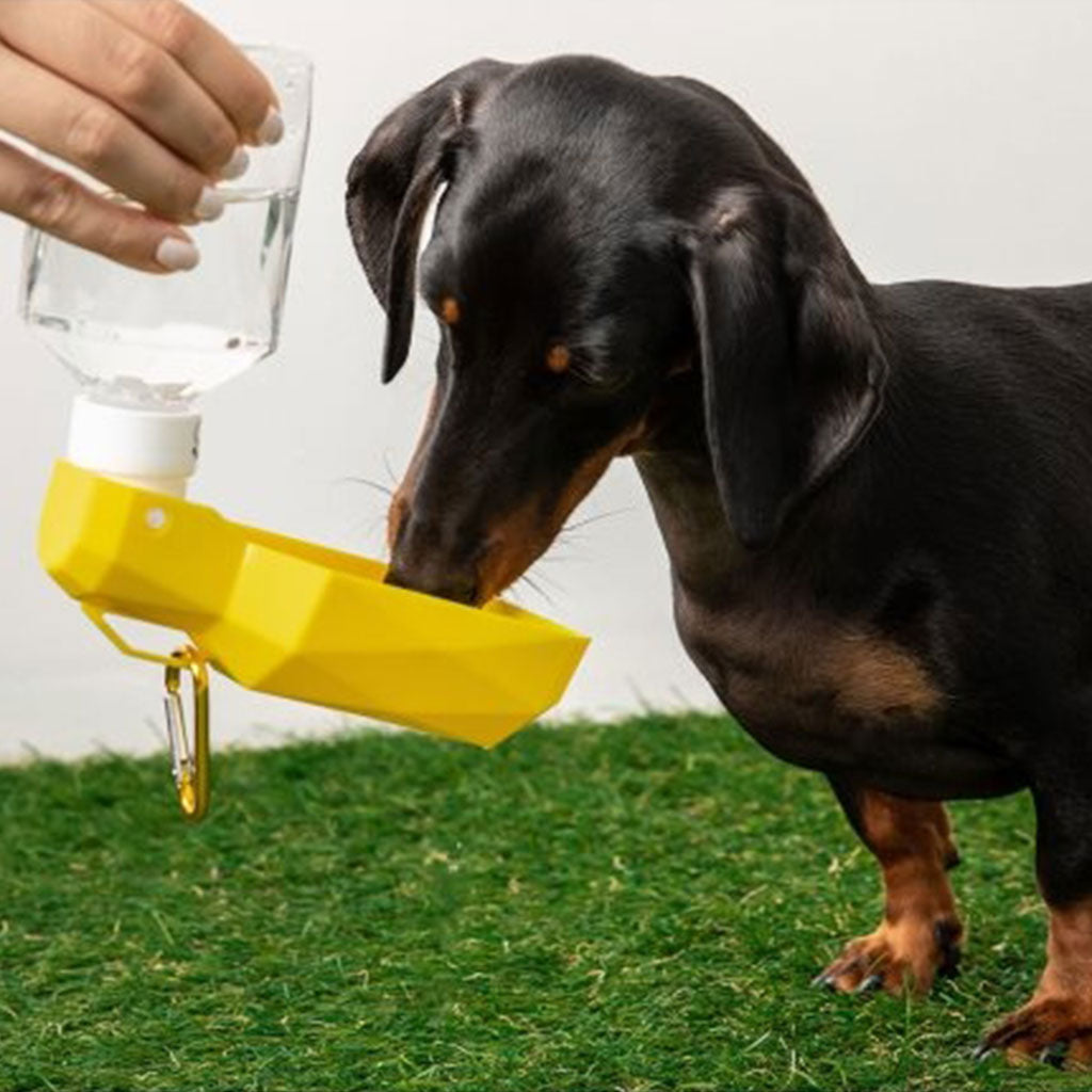 The GF Pet® water bottle with a foldout bowl is perfect for hikes, traveling, and camping.