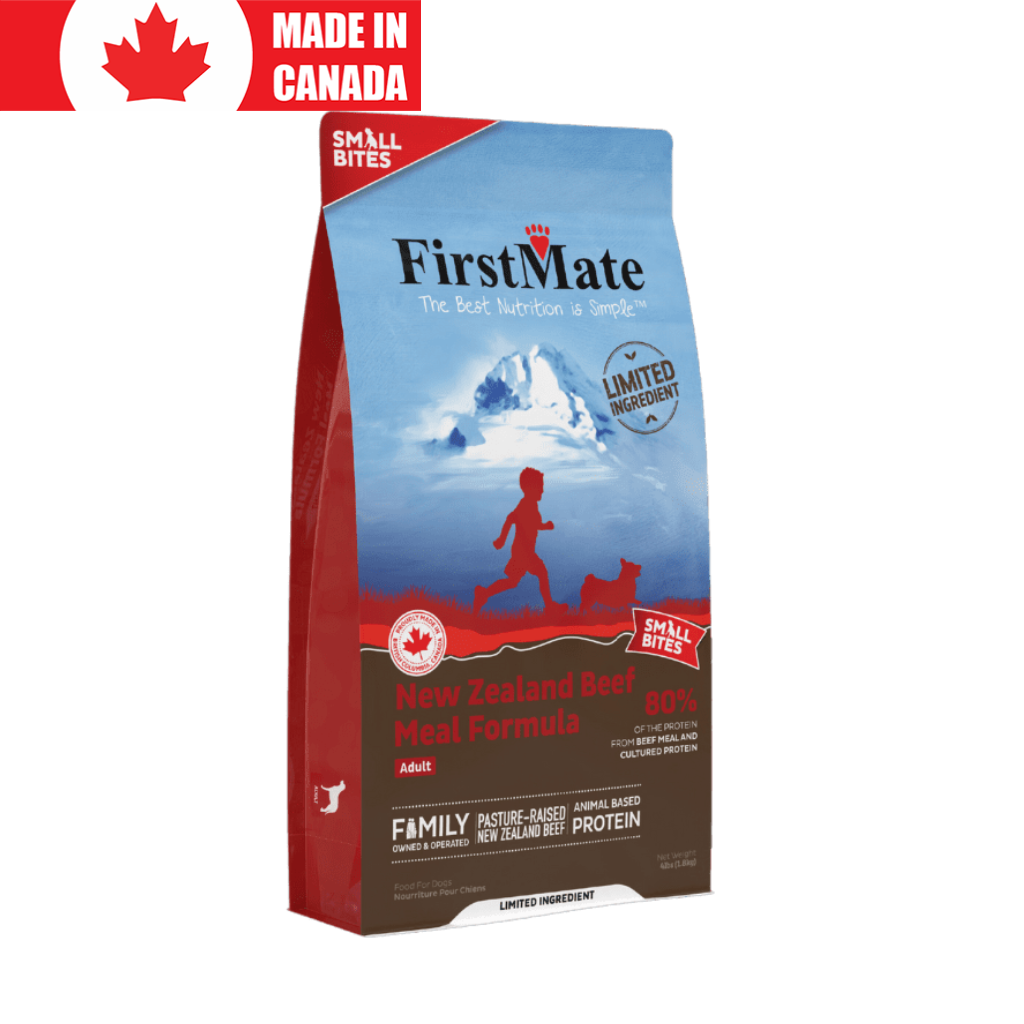 FirstMate's New Zealand Beef features pasture-raised, hormone and antibiotic-free New Zealand beef as the sole animal protein. This limited ingredient formula is ideal for dogs with allergies or dietary restrictions. With fewer ingredients, it’s gentle on digestion, and the small-bite kibble is perfect for smaller mouths.