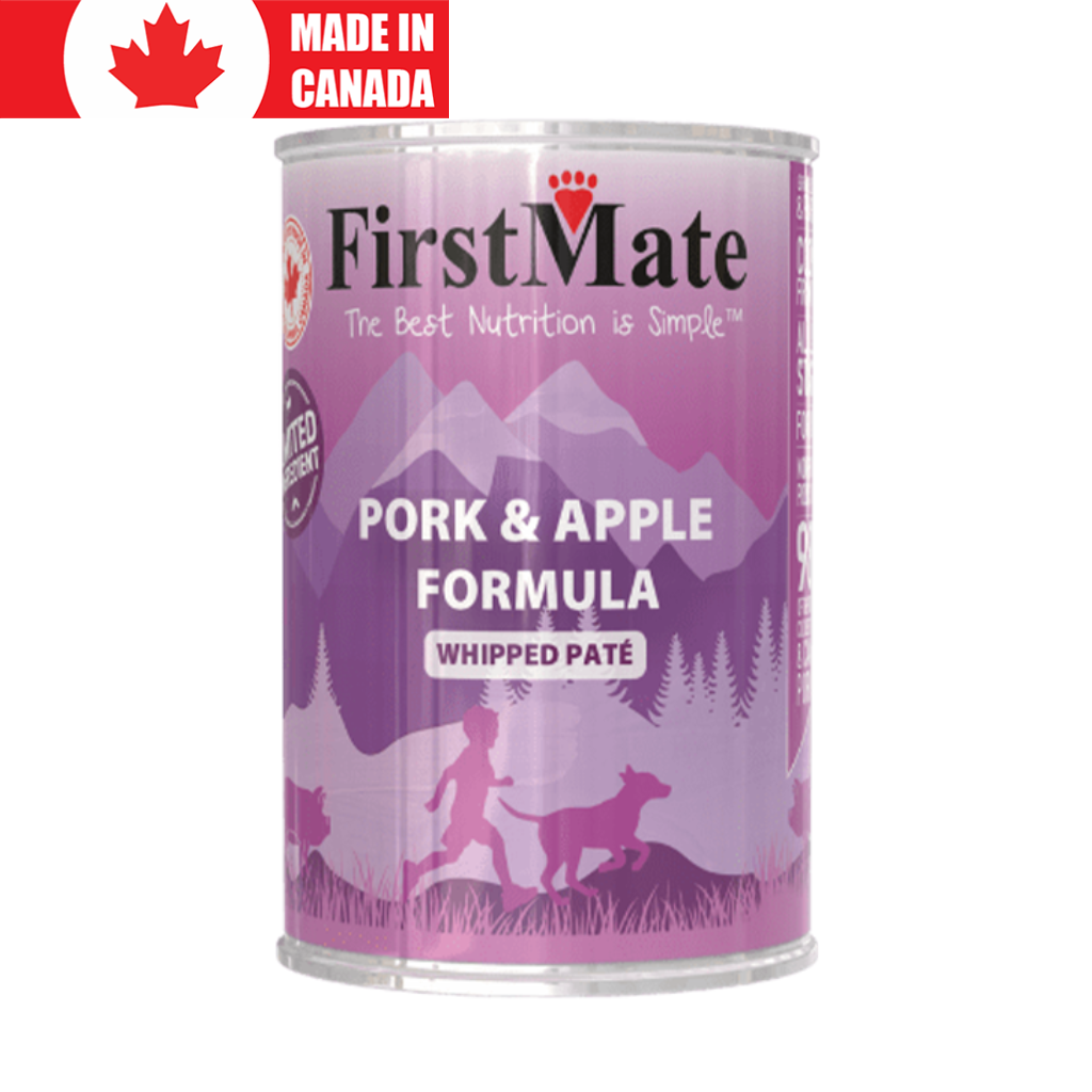 FirstMate’s Pork & Apple Formula uses Canadian pork with vegetables. Our Pork is food-grade without added hormones. This Grain Free formula is ideal for everyday feeding and can be fed alongside one of our dry options or on its own as a complete and balanced formula.