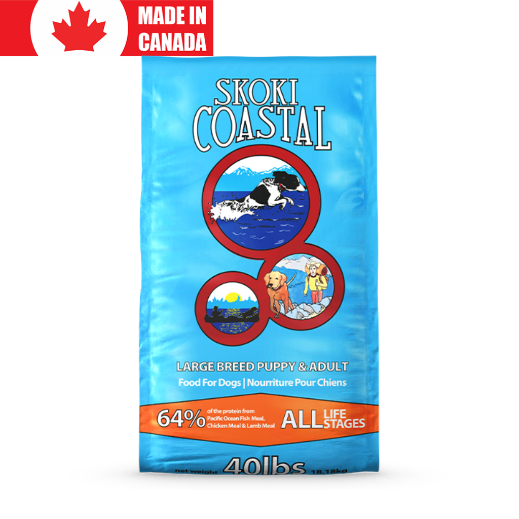 Skoki Coastal by FirstMate is a high-quality, corn and wheat-free dog food. This fish-forward formula, featuring chicken and lamb, is sourced from the Pacific Northwest and rich in omega-3 and 6 fatty acids. Ideal for everyday feeding and suitable for large-breed puppies, Skoki Coastal is perfect for value-conscious customers seeking premium nutrition.